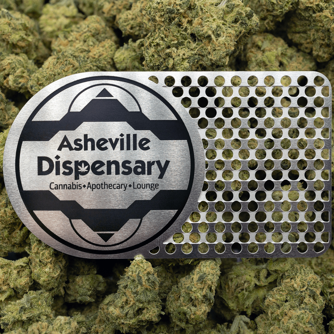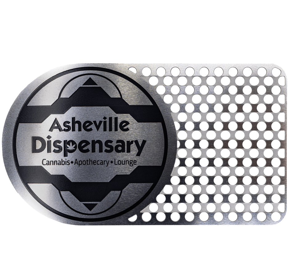 Our Asheville Dispensary Stainless Steel Grinder Card is your solution for grinding flower on the go. Designed to fit effortlessly in your wallet, pocket, or stash bag, this ultra-portable tool delivers quick, efficient grinding—anytime, anywhere.