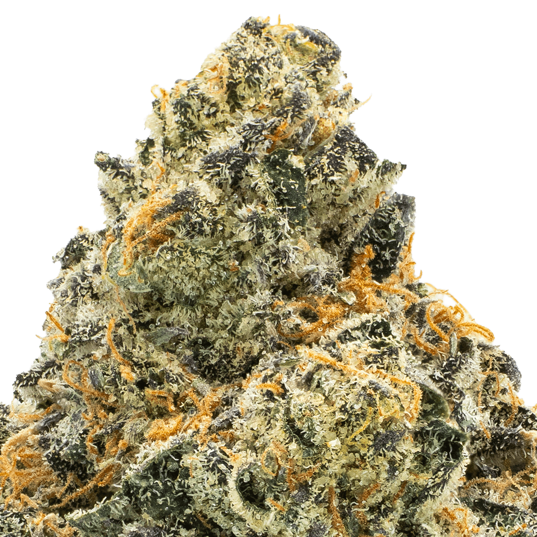 Our Blueberry Pie strain of THCA flower is a hybrid cannabis strain created by crossing Girl Scout Cookies & Blue Dream. The buds feature a vibrant, dark and light green and a bit of dark purple, dense buds with a plethora of orange hairs and golden and white trichomes