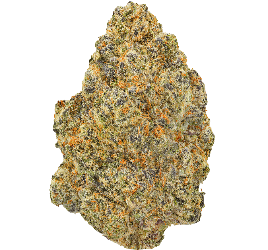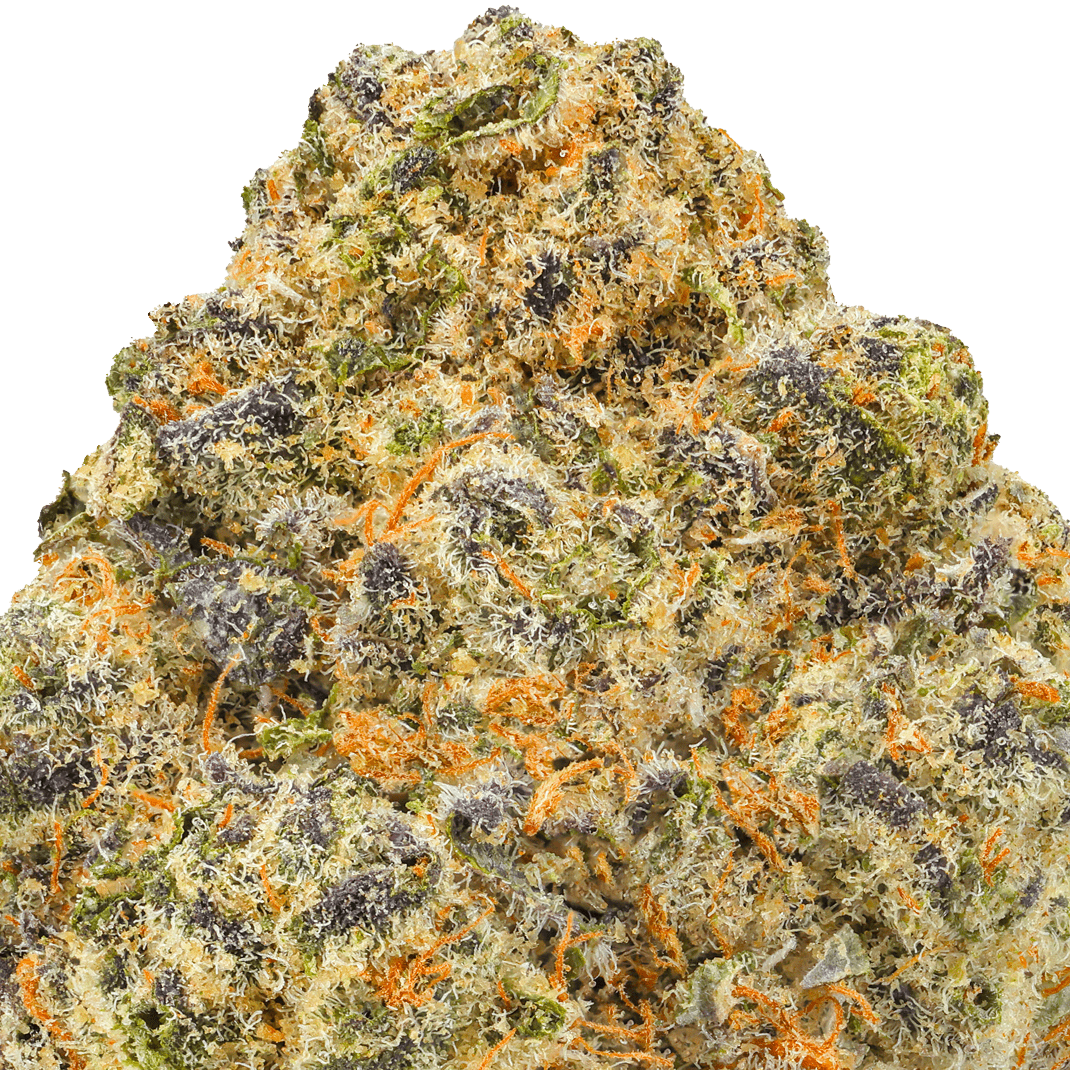 Our Churro Gas strain of THCA flower is an indica-hybrid cannabis strain, created by combining Purple Churro with Gas Drop. The Churro Gas strain’s buds are light green, dense, and covered in vibrant orange hairs, with golden and white trichomes.