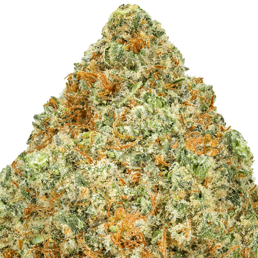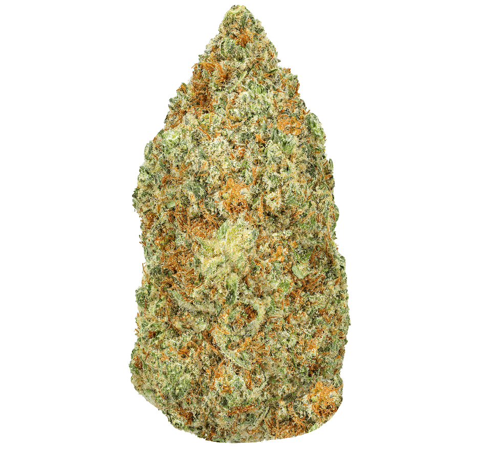 Our London Pound Cake strain of THCA flower is an indica-hybrid strain created by a cross between Sunset Sherbert and an unknown indica strain. The buds feature a vibrant, light green, dense buds with a plethora of orange hairs and golden and white trichomes