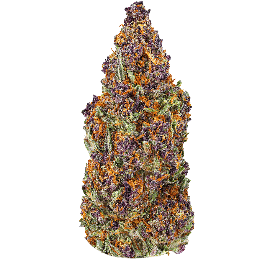 Our Trop Cherry strain of THCA flower is a sativa cannabis strain created by crossing Tropicana Cookies with Cherry Cookies F3. The Trop Cherry strain buds have a vibrant, dark purple and a bit of green color, very dense and golden and white trichomes.