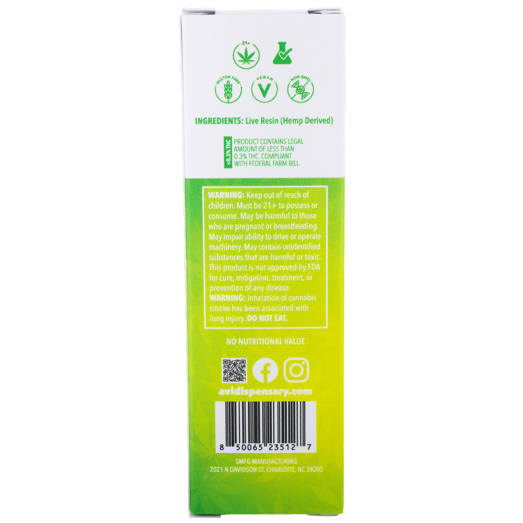 Our THCA Live Resin Vape is crafted with high-quality ingredients to provide a premium product that ensures a consistent and enjoyable experience.