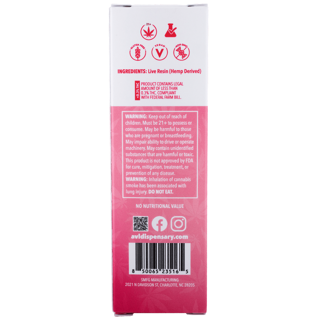 Our THCA Live Resin Vape is crafted with high-quality ingredients to provide a premium product that ensures a consistent and enjoyable experience.